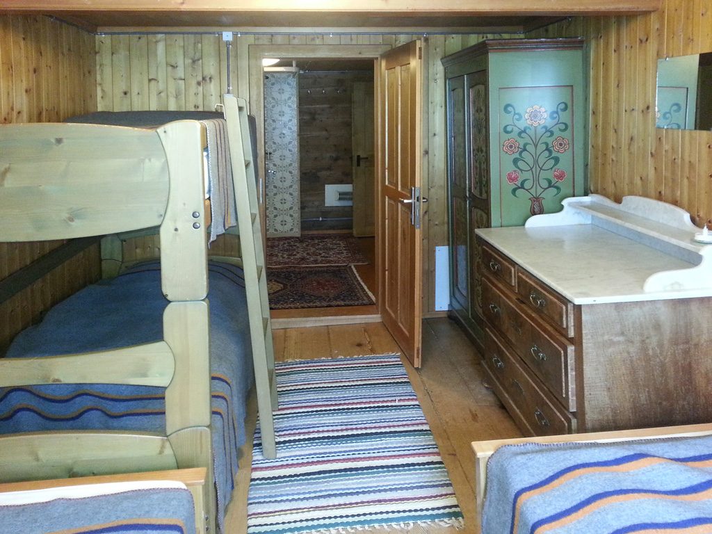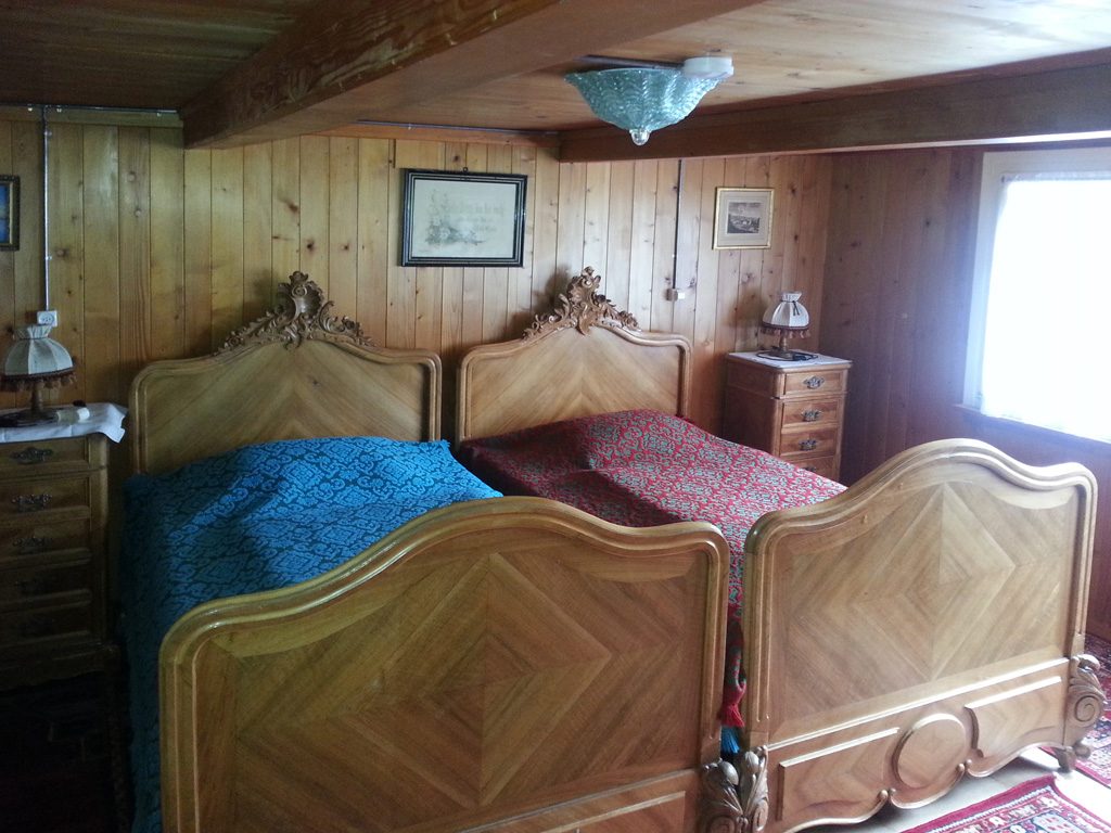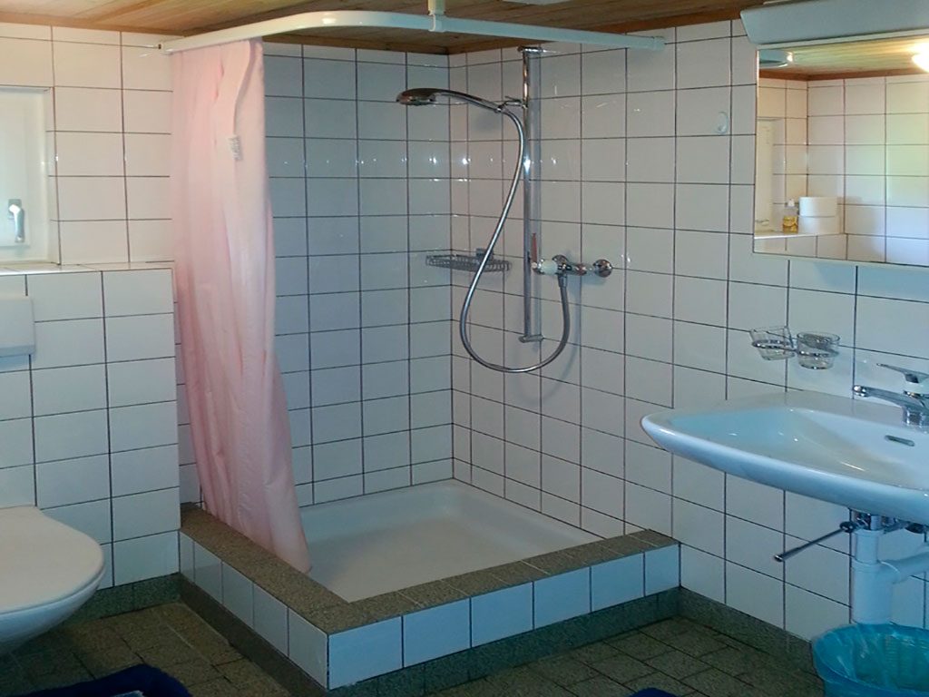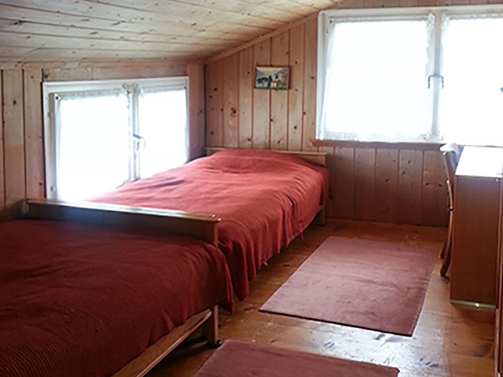 Im ersten Obergeschoss befindet sich das Badezimmer mit Duschkabine und Toilette. Daneben hat es eine weitere separate Toilette. Gegenüber befinden sich die Schlafzimmer. Ein 4-er Zimmer mit einem Hochbett und weiterem Kinderbett, zwei 2-er und ein 1-er Zimmer.
